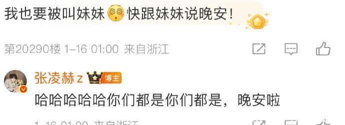 更让人心动的是,张凌赫直接喊粉丝“妹妹”,不是泛泛的“姐妹”,专属感直接拉满,瞬间引发其他粉丝“醋意”留言。
